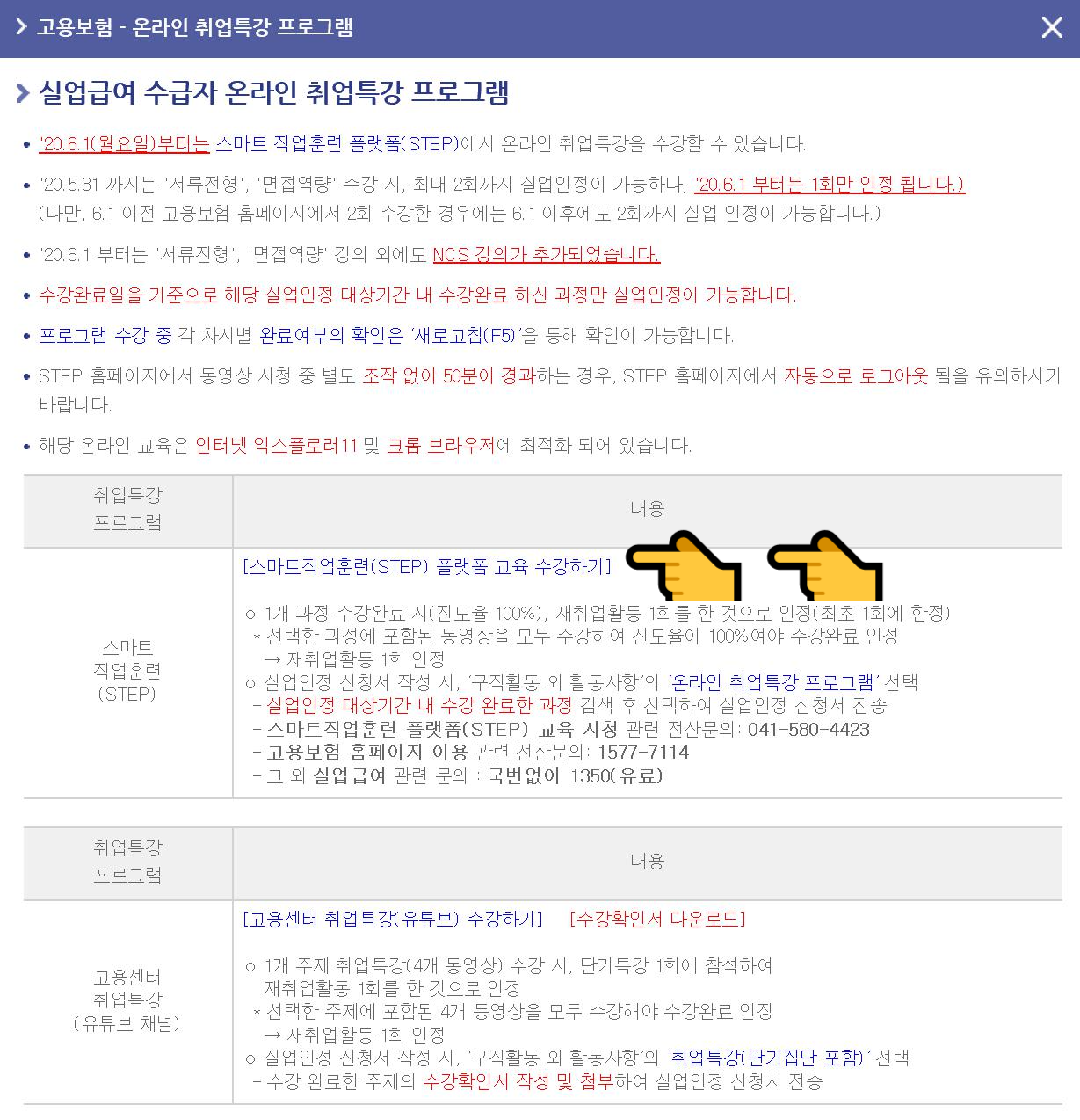 ✅실업인정 신청👉 구직활동 외 활동 상황👉 온라인 취업특강 바로가기👉 팝업창] 스마트 직업훈련 플랫폼 교육 수강